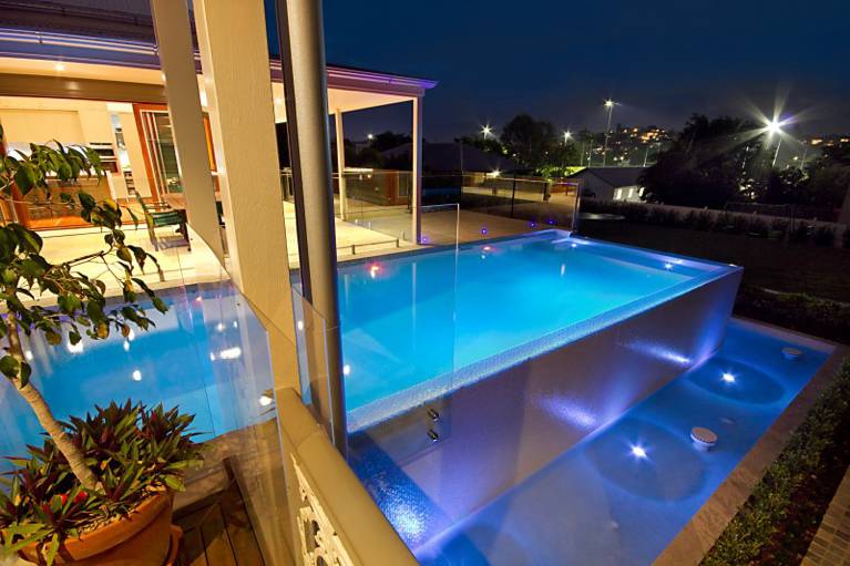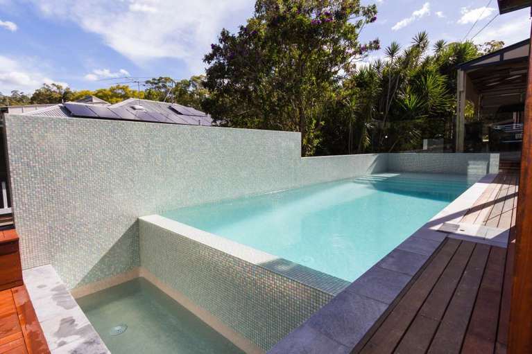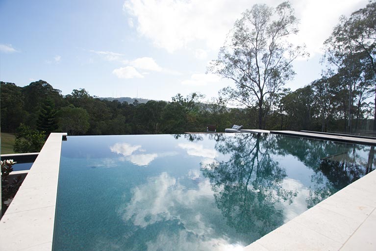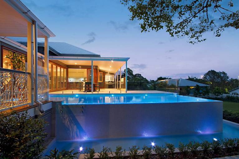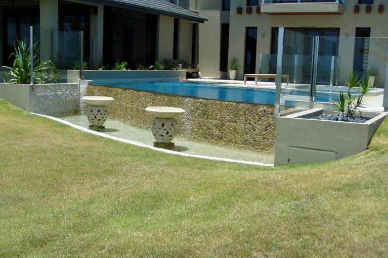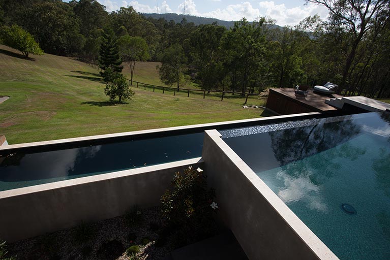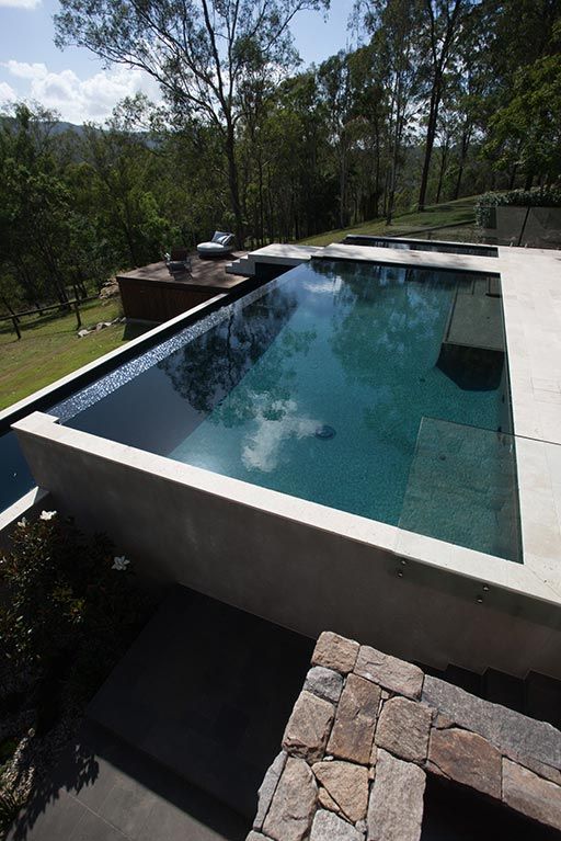Another stunning project with the pool built to the first-floor verandah height with the carport sitting below. Its tiled walls and catchment ponds paired with simple and classy landscaping make this pool an eye-catcher. Finished with automated equipment, this fully self-cleaning pool is the ultimate in design.