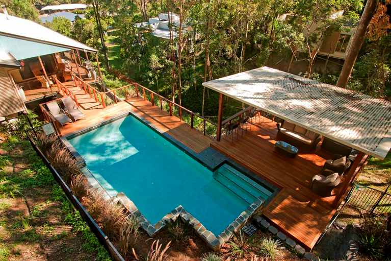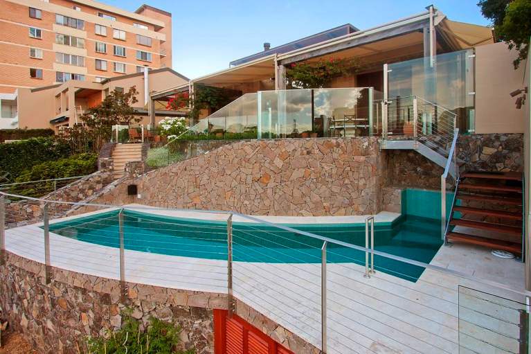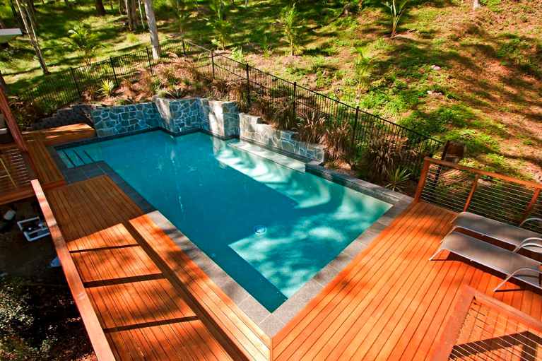 Most properties are not flat and, therefore, will need either additional out-of-ground formwork or site cutting and retaining walls. These days, it’s fairly common to see a pool with 1-1.5m of exposed shell due to ground levels. Pools in general need to be seated at least 600mm into natural ground, but in some cases the pool location means the pool shell will be nowhere near natural ground.